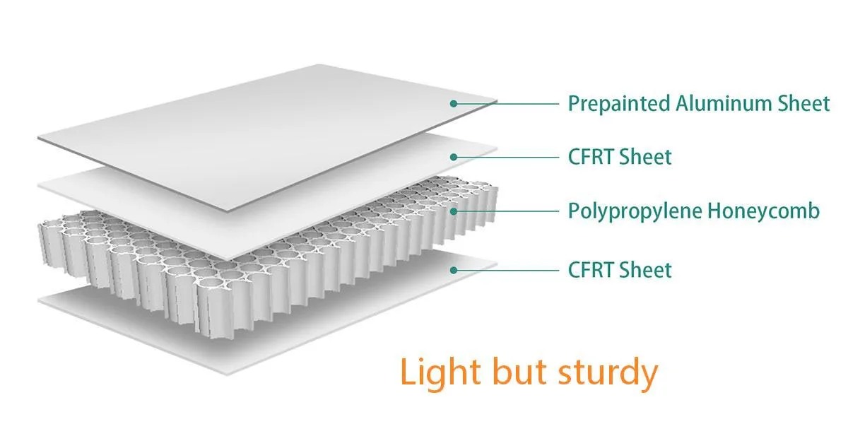 ●Hunajakennoratkaisu: Erittäin kevyt. Komposiittipaneeliemme lujuus on yhtä suuri tai suurempi kuin teräs samalla kun paino putoaa 30-50%.